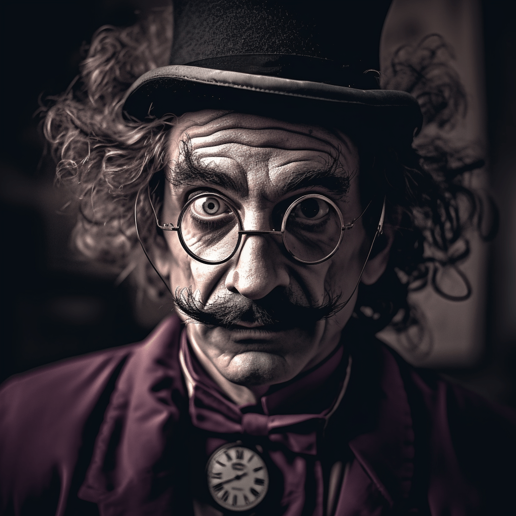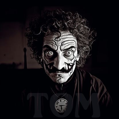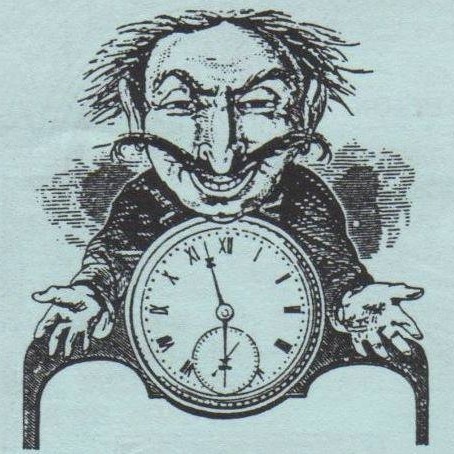 Since our inception in the 90s, The Tom “Clockman” character has undergone a visual transformation that reflects the ever-changing times and changing spirit of our music. It all began with a graphic from a Dover art book. Later James hired artist, Ned Gannon, to make the character our own. Each new iteration of the Tom logo has captured a facet of our musical journey and evolved along with us. Of course, by 2023, the Clockman could leap off the paper and take on a life of his own! The question we seem to always come back to is, “Is this Tom?” Is the “Clockman” our creation or are we his? These days, it’s getting to be a hard question to answer! Check out some of the faces of… Tom? “Then and Now.”